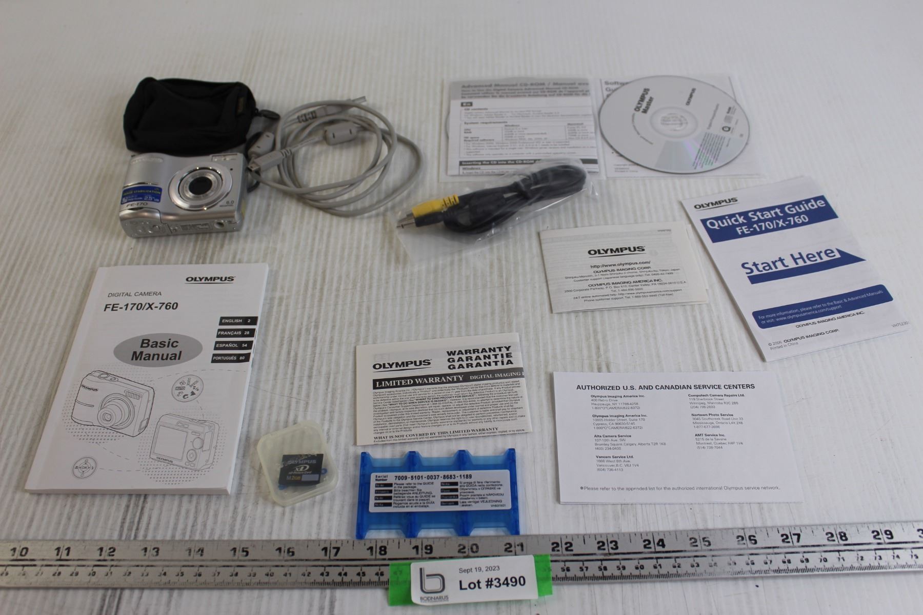 Olympus Camera with Manual - Untested, Olympus 2GB Picture Card, Assorted Manuals, Misc.