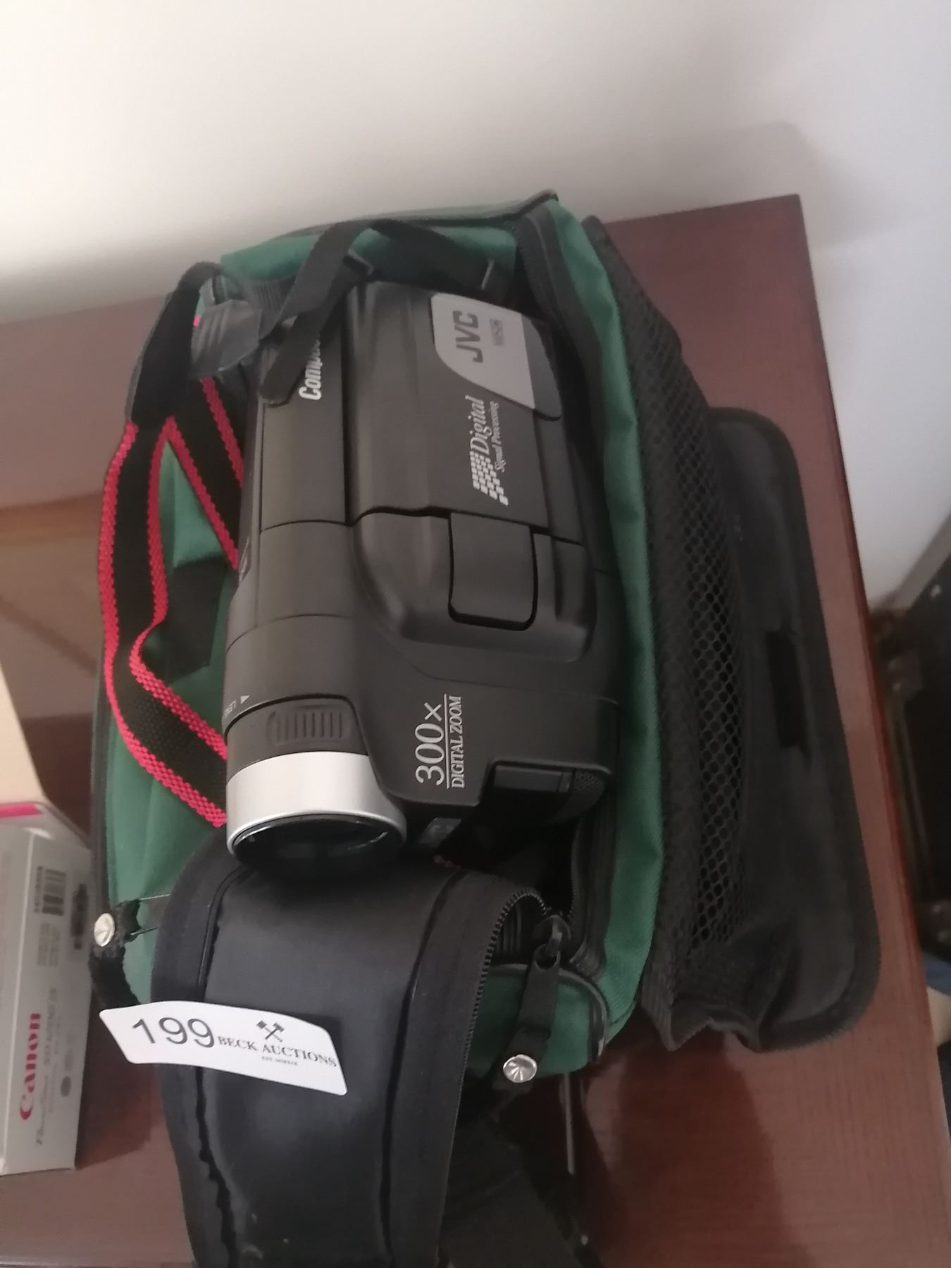Olympus FE-370 Digital Camera, Canon Powershot SD1200 IS, and JVC Compact VHS Camcorder