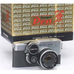 Olympus, Japan, 1963, SLR 18 x 24 mm, F. Zuiko Auto-S 1,8/38. Mit "Exposure-Meter", Objektivdeckel und Originalkarton. With lens cap and original box. - (2-/2) - € 200/300 - (62/55)
