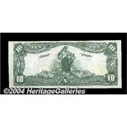 Olyphant, PA - $10 1902 Date Back Fr. 618 First NB Ch. # (E)8806A fully embossed beauty with the deep plate impression and coloring that can be found only on the few Third Charter Date Backs that have remained in pristine condition. If you are searching for an example that you will never have to upgrade, your quest is now over. Gem Crisp Uncirculated. <BR><BR><B>Important notice:</B> Heritage usually auctions material at the rate of 200-250 lots per hour. On some occasions eBay Live bid software or the Internet may not be able to keep up with the pace of the auction. We recommend placing a realistic absentee bid now as insurance to avoid disappointment. Occasionally the auctioneer may eliminate or reject an eBay Live bid, and the auctioneer may also reopen a lot after the close of the eBay live bidding (usually because we missed an audience bid), and may reject your bid even if it shows you as the winning bidder. By bidding via eBay Live, you agree that Heritage may award the lot to another bidder at its sole discretion under the circumstances described above or any other reasonable circumstances. Since eBay bids are not shown to us until we open the lot on the floor, we treat those bids just like floor bids. In most cases the floor responds before the eBay bid is presented to us, due to Internet lag time, so for consistency we have made it a policy that floor bids are always considered first over tie eBay live bids. Also please note that all Heritage lots purchased through eBay Live carry a 20% Buyer's Premium. Please make sure you read the Terms and Conditions before you bid. <BR><BR><B>IMPORTANT ANNOUNCEMENT ABOUT RESERVES:</B> Heritage now divulges all reserves on its web site 7 days before every auction. If you want to know whether the reserve on this lot has been met, and if not, what the reserve amount is, please visit this lot page on the HeritageCoin.com web site, or email: bid@HeritageGalleries.com