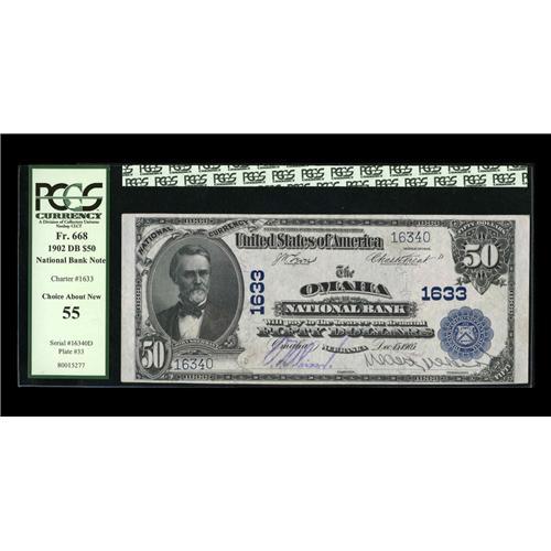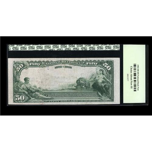 <B>Omaha, NE</B></I> - $50 1902 Date Back Fr. 668 <B>The Omaha NB</B></I> Ch. # 1633<BR>A lovely note with great eye appeal, and a fine representative of its type as well. It's housed in a PCGS holder, and has been given a grade of <B>Choice About New 55.</B></I>