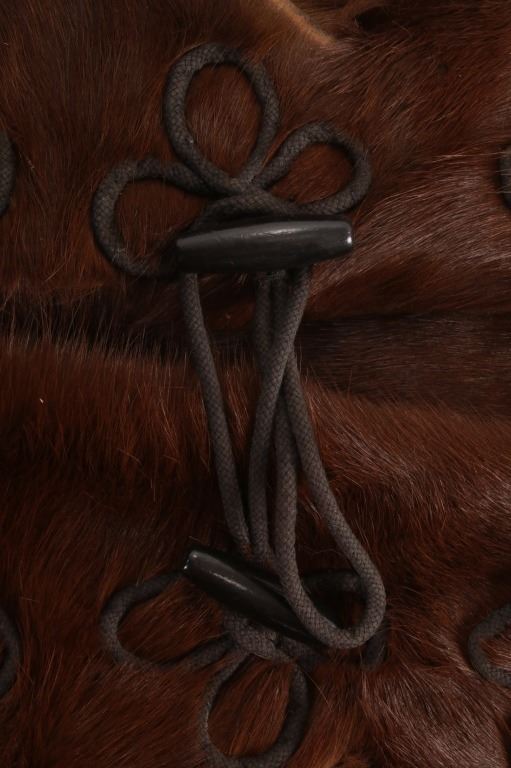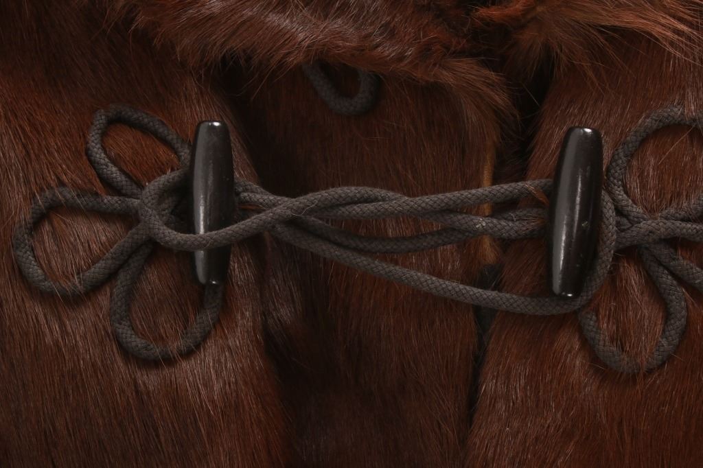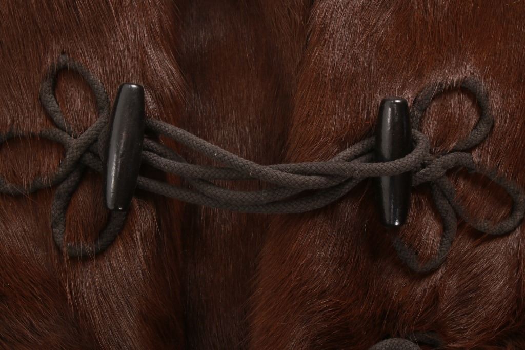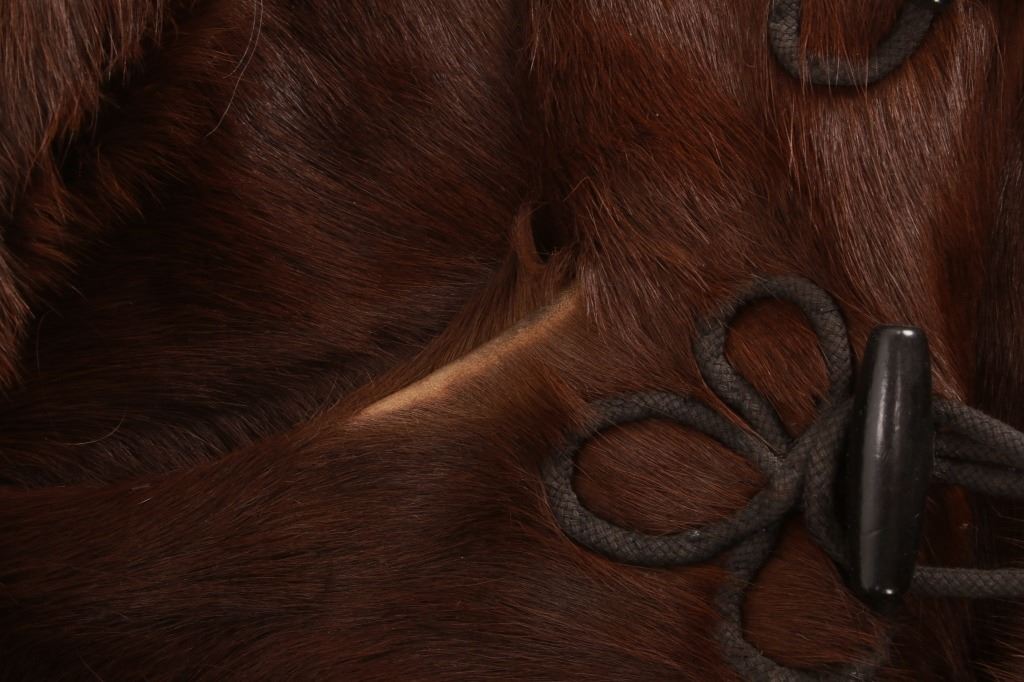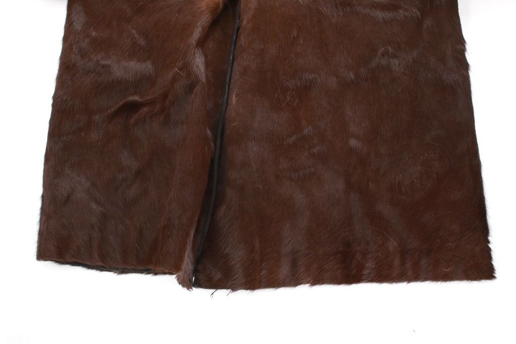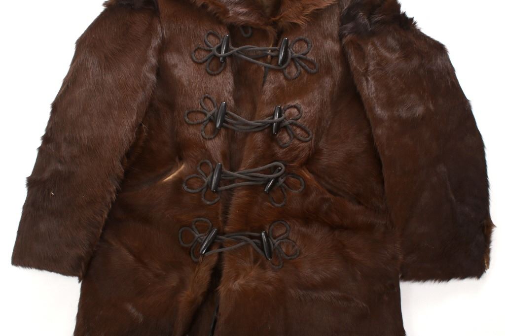 Featured in this lot is this Omaha Tanning Co. horse hide stagecoach jacket circa 1924. The jacket shows a wonderfully and professionally crafted horse hide construction with a beautiful design with a unique system of buttons down the front ands a very soft horse hide fur. The stagecoach coat comes with a provenance receipt from Omaha Tanning Co. out of Omaha, Nebraska No. 15159 on April 9, 1924 and sold to a N.K. Hills out of Baird, Montana. The condition of this coat is good with no obvious signs of damage and in good overall condition. The measurements of this coat are 49" x 24".