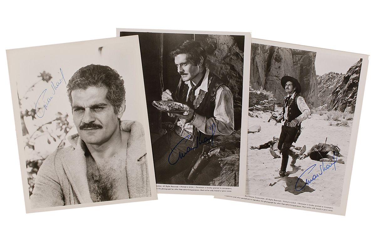 Three different glossy 8 x 10 photos, two being 1968 Columbia publicity photos, each signed in either blue felt tip or ballpoint. In fine condition, with some scattered light surface marks and creases.