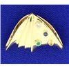 This Omega slide is set in 14k yellow gold and accented with bezel set Citrine, Emerald, Sapphire and diamond. This piece will fit up to a 6mm omega. The slide over 1" long and 1 1/4" wide. 6.8g