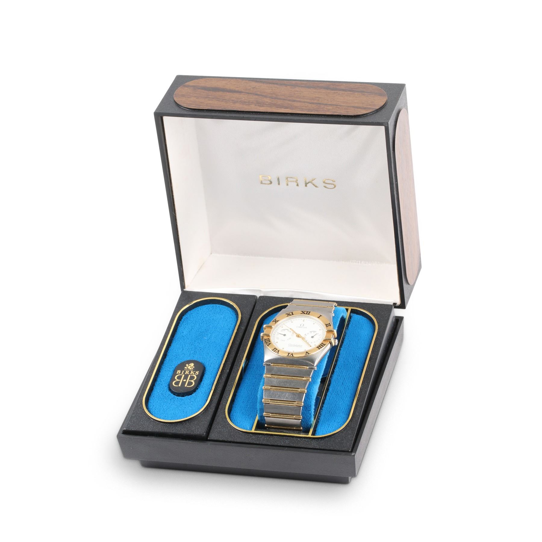 CIRCA: 1990s. CASE MATERIAL: 18K Gold & Stainless Steel. DIAL DIAMETER: 23mm. BRACELET MATERIAL: 18K Gold & Stainless Steel. MOVEMENT: Caliber 1431 Quartz. FEATURES: Day, Date. WEIGHT: 75.8g. Est. $800-1200 DISCLOSURE: Watches were running at time of photography unless otherwise stated. Service history is unknown unless paperwork is provided. We cannot guarantee accuracy of any of the watches offered. "