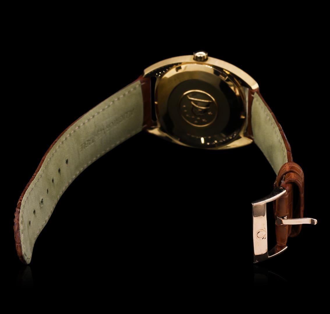 Omega Case: Rose Gold ; Omega Buckle: Plated ; Dial & Hands:18k Rose Gold ; Band: Brown Alligator; Model #:168017; Watch is in fantastic condition; Professionally polished and serviced!