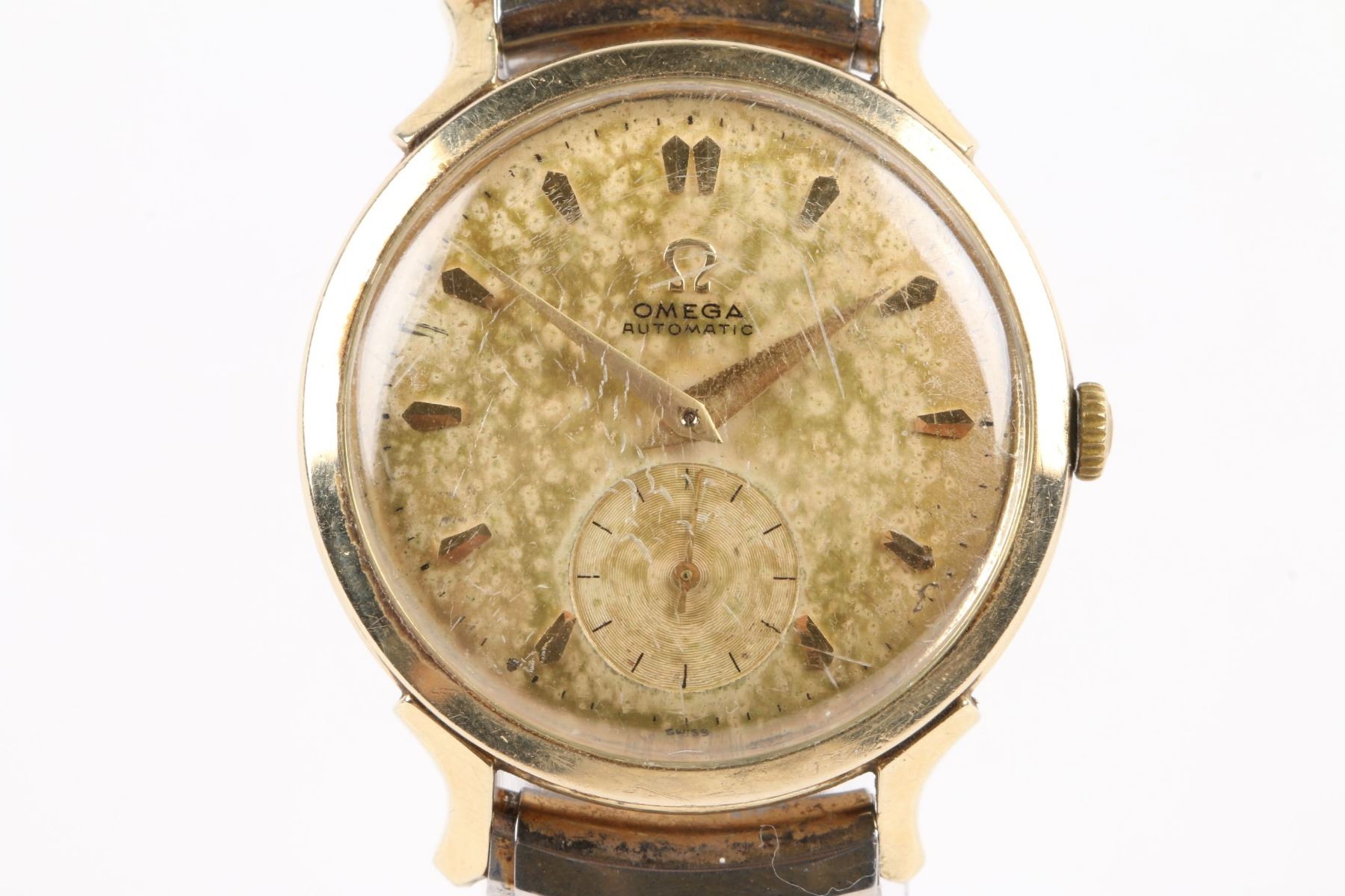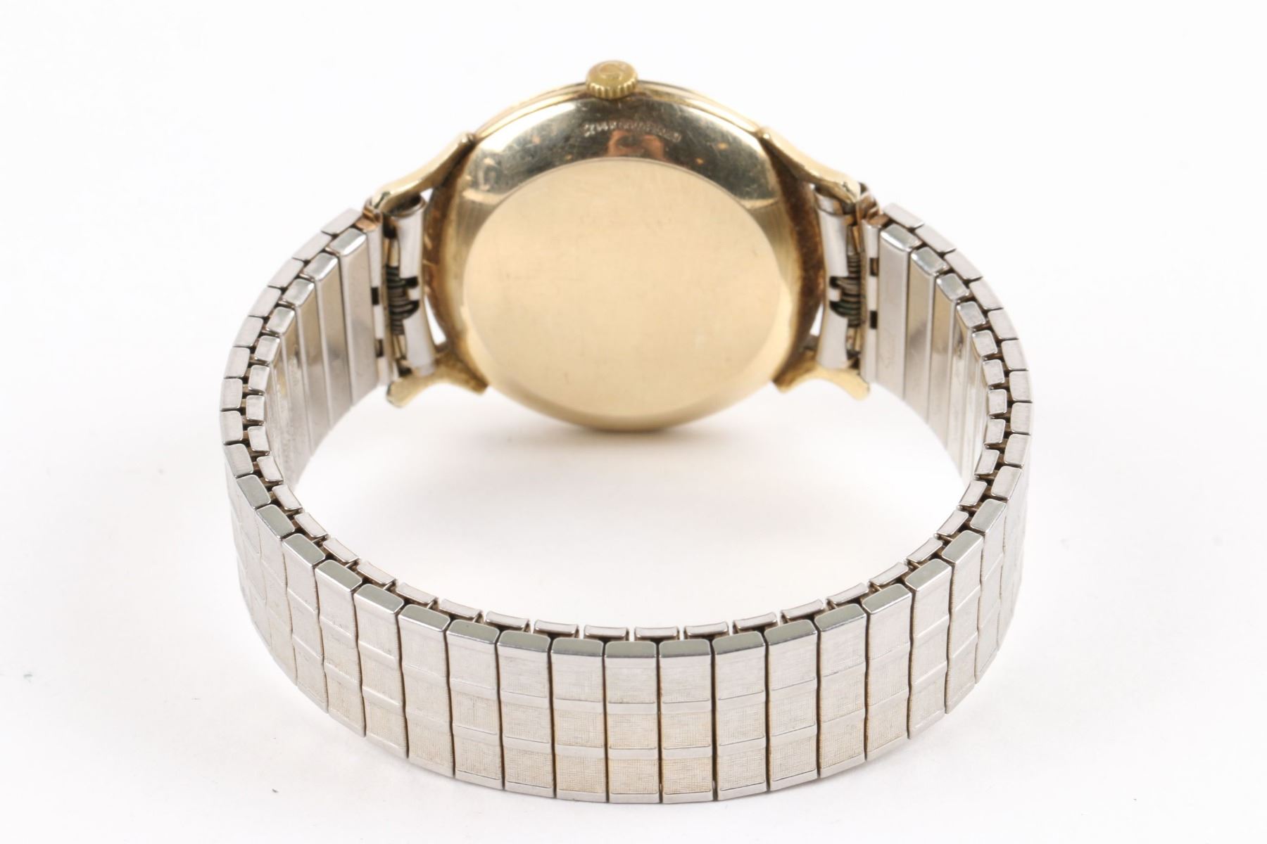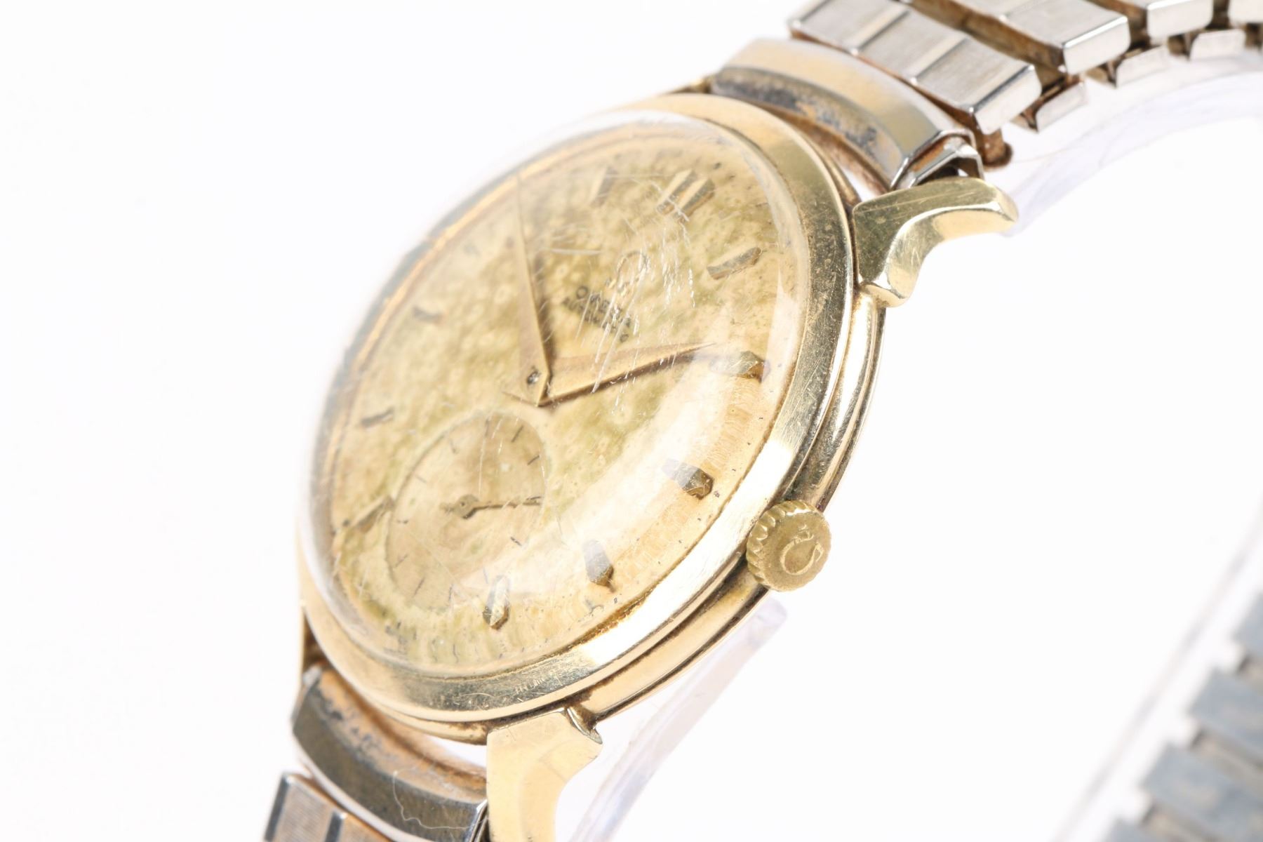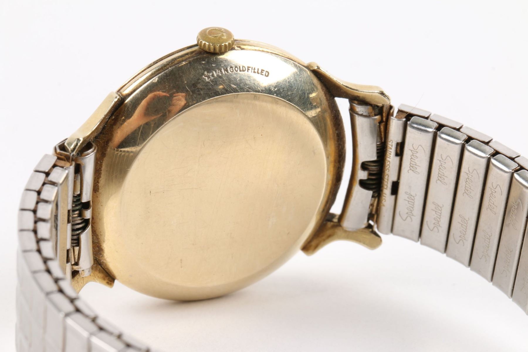 CIRCA: 1952. CASE MATERIAL: 14K Gold Filled. DIAL DIAMETER: 28mm. BRACELET MATERIAL: Stainless Steel. MOVEMENT: Caliber 342 "Bumper" Automatic. NOTES: Dial exhibits heavy patina. Minor oxidation evident on movement. WEIGHT: 53.5g. Est. $200-300 DISCLOSURE: Watches were running at time of photography unless otherwise stated. Service history is unknown unless paperwork is provided. We cannot guarantee accuracy of any of the watches offered. "