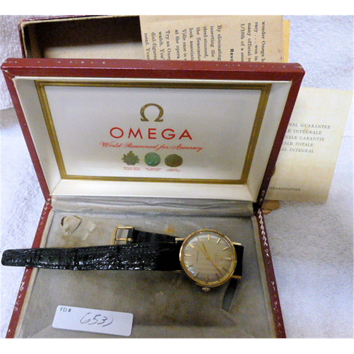 Omega Automatic Sea master watch running with original boxes - paperwork - leather band black - gold tone bezel self winding - second hand - emblem on back of case - GREAT PIECE