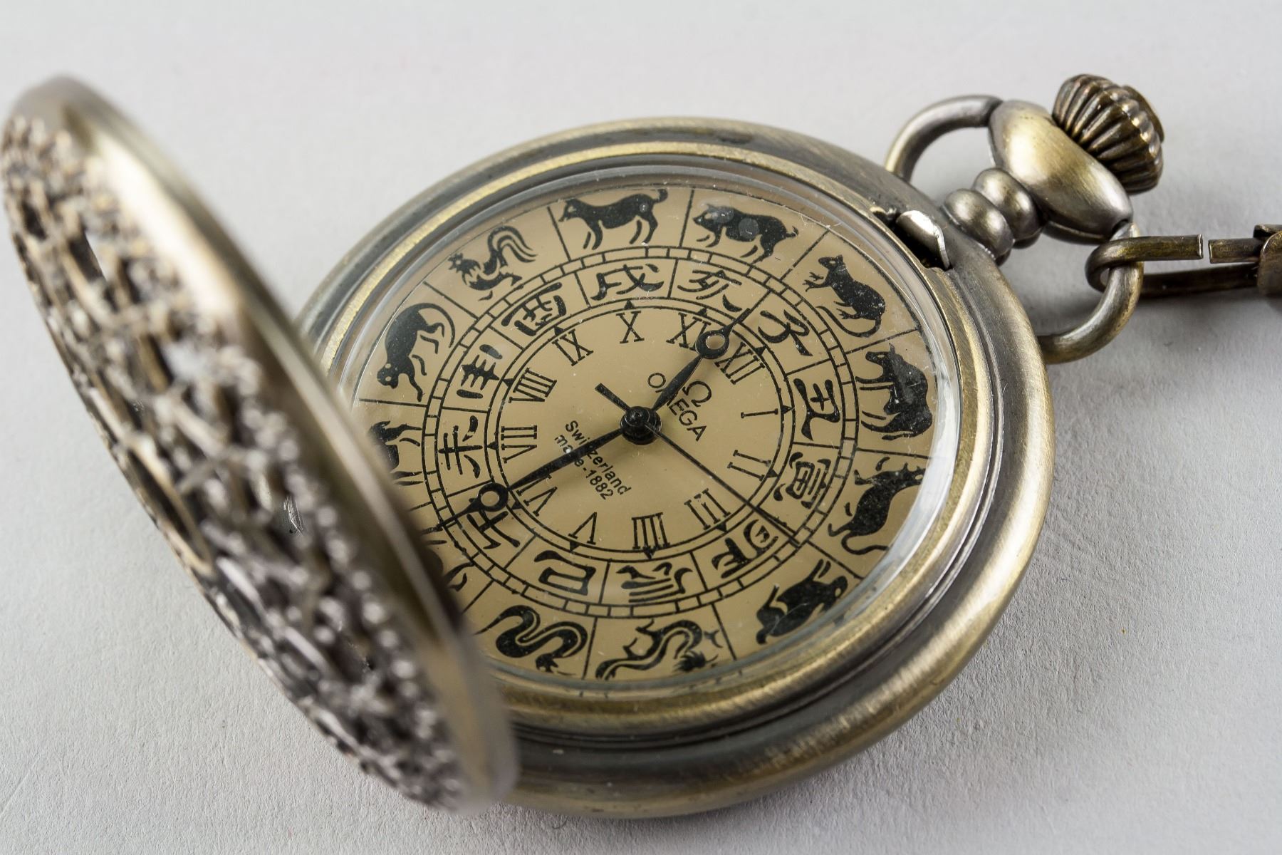 Omega pocket watch, with Chinese Zodiac timing dial, in working condition, 6 x 4.5 cm, 72 grams