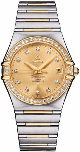 Model: 111.25.36.20.58.001 - CASE = [Material:Brushed and Polished Stainless Steel], [Case Diameter:35.5], [Bezel:Fixed 18k Yellow Gold Set with Diamonds], [Case Back:See-thru Sapphire crystal], [Water Resistant:50 Meters - 165 Feet], [Crystal:Scratch Resistant Sapphire],; DIAL = [Color:Champagne with 11 Diamond Hour Markers and Date at 3],; MOVEMENT = [Type:Automatic Self Winding Co-Axial Chronometer with Approx. 44hr Power Reserve], [Crown:18k Yellow Gold Screw Down],; BAND = [Clasp:Deployment Buckle], [Type:Brushed with Polished Stainless Steel and Yellow Gold Center Bar], (Usually ships in 2 to 4 weeks.)