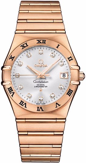 Model: 111.50.36.20.52.001 - CASE = [Material:18k Rose Gold], [Case Diameter:35.5], [Bezel:Fixed 18k Rose Gold Engraved with Roman Numerals], [Case Back:See-thru Sapphire crystal], [Water Resistant:50 Meters - 165 Feet], [Crystal:Scratch Resistant Sapphire],; DIAL = [Color:Silver with 11 Diamond Hour Markers and Date at 3],; MOVEMENT = [Type:Automatic Self Winding Co-Axial Chronometer with Approx. 44hr Power Reserve], [Crown:18k Rose Gold Screw Down],; BAND = [Clasp:Deployment Buckle], [Type:Brushed and Polished 18k Rose Gold], (Usually ships in 2 to 4 weeks.)