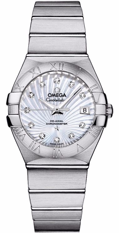 Model: 123.10.27.20.55.001 - CASE = [Material:Stainless Steel], [Case Diameter:27], [Case Thickness:9mm], [Case Back:See-thru Sapphire crystal], [Water Resistant:100 Meters - 330 Feet], [Crystal:Anti-Reflective Scratch Resistant Sapphire],; DIAL = [Color:Mother of Pearl],; MOVEMENT = [Type:Automatic Self Winding - Chronometer],; BAND = [Clasp:Push Button Foldover Clasp], [Type:Stainless Steel Brushed], (Usually ships in 1 to 2 business days.)