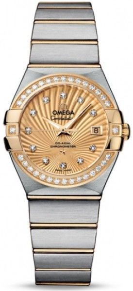 Model: 123.25.27.20.58.001 - CASE = [Material:Steel/18kt Rose Gold], [Case Diameter:27], [Bezel:Fixed 18KT Rose Gold set with Diamonds], [Case Back:See-thru Sapphire crystal], [Water Resistant:100 Meters/330 Feet], [Crystal:Scratch Resistant Sapphire], DIAL = [Color:Champagne with Diamond Hour Markers and dat at 3], MOVEMENT = [Type:Automatic Self Winding], BAND = [Clasp:Deployment Buckle], [Type:Steel/18kt Rose Gold], (Usually ships in 2 to 4 weeks.)