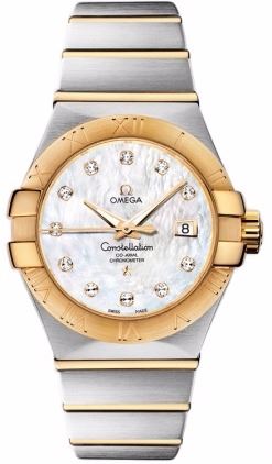 Model: 123.20.31.20.55.002 - CASE = [Material:Steel/18kt Gold], [Case Diameter:31], [Case Back:Solid], [Water Resistant:100 Meters/330 Feet], [Crystal:Scratch Resistant Sapphire],; DIAL = [Color:White Mother Of Pearl/Diamond],; MOVEMENT = [Type:Automatic Self Winding],; BAND = [Clasp:Deployment Buckle], [Type:Steel/18kt Gold], (Usually ships in 2 to 4 weeks.)