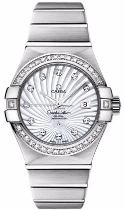 Model: 123.55.31.20.55.003 - CASE = [Material:18kt White Gold], [Case Diameter:31], [Case Back:Solid], [Water Resistant:100 Meters/330 Feet], [Crystal:Scratch Resistant Sapphire],; DIAL = [Color:White Mother Of Pearl Guilloche/Diamond],; MOVEMENT = [Type:Automatic Self Winding],; BAND = [Clasp:Deployment Buckle], [Type:18kt White Gold], (Usually ships in 2 to 4 weeks.)