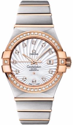 Model: 123.25.31.20.55.001 - CASE = [Material:Steel/18kt Rose Gold], [Case Diameter:31], [Case Back:Solid], [Water Resistant:100 Meters/330 Feet], [Crystal:Scratch Resistant Sapphire],; DIAL = [Color:White Mother Of Pearl Guilloche Diamond],; MOVEMENT = [Type:Battery Powered Quartz],; BAND = [Clasp:Deployment Buckle], [Type:Steel/18kt Rose Gold], (Usually ships in 4 to 8 weeks.)