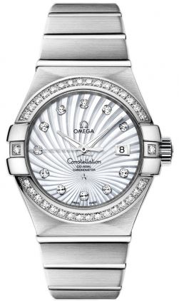 Model: 123.55.31.20.55.003 - CASE = [Material:18kt White Gold], [Case Diameter:31], [Case Back:Solid], [Water Resistant:100 Meters/330 Feet], [Crystal:Scratch Resistant Sapphire], DIAL = [Color:White Mother Of Pearl Guilloche/Diamond], MOVEMENT = [Type:Automatic Self Winding], BAND = [Clasp:Deployment Buckle], [Type:18kt White Gold], (Usually ships in 2 to 4 weeks.)