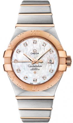Model: 123.20.31.20.55.001 - CASE = [Material:Steel/18kt Rose Gold], [Case Diameter:31], [Case Back:Solid], [Water Resistant:100 Meters/330 Feet], [Crystal:Scratch Resistant Sapphire], DIAL = [Color:White Mother Of Pearl/Diamond], MOVEMENT = [Type:Automatic Self Winding], BAND = [Clasp:Deployment Buckle], [Type:Steel/18kt Rose Gold], (Usually ships in 2 to 4 weeks.)