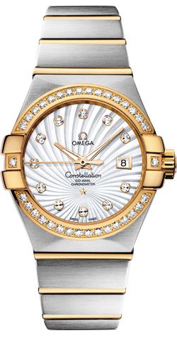 Model: 123.25.31.20.55.002 - CASE = [Material:Steel/18kt Gold], [Case Diameter:31], [Case Back:Solid], [Water Resistant:100 Meters/330 Feet], [Crystal:Scratch Resistant Sapphire], DIAL = [Color:White Mother Of Pearl Guilloche Diamond], MOVEMENT = [Type:Automatic Self Winding], BAND = [Clasp:Deployment Buckle], [Type:Steel/18kt Gold], (Usually ships in 2 to 4 weeks.)