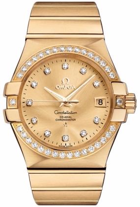 Model: 123.55.35.20.58.001 - CASE = [Material:18kt Gold], [Case Diameter:35], [Case Back:Solid], [Water Resistant:100 Meters/330 Feet], [Crystal:Scratch Resistant Sapphire],; DIAL = [Color:Champagne/Diamond],; MOVEMENT = [Type:Automatic Self Winding],; BAND = [Clasp:Deployment Buckle], [Type:18kt Gold], (Usually ships in 2 to 4 weeks.)