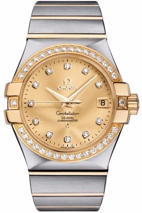 Model: 123.25.35.20.58.001 - CASE = [Material:Steel/18kt Gold], [Case Diameter:35], [Case Back:Solid], [Water Resistant:100 Meters/330 Feet], [Crystal:Scratch Resistant Sapphire],; DIAL = [Color:Champagne/Diamond],; MOVEMENT = [Type:Automatic Self Winding],; BAND = [Clasp:Deployment Buckle], [Type:Steel/18kt Gold], (Usually ships in 2 to 4 weeks.)