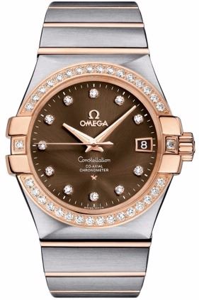Model: 123.25.35.20.63.001 - CASE = [Material:Steel/18kt Rose Gold], [Case Diameter:35], [Case Back:Solid], [Water Resistant:100 Meters/330 Feet], [Crystal:Scratch Resistant Sapphire],; DIAL = [Color:Brown/Diamond],; MOVEMENT = [Type:Automatic Self Winding],; BAND = [Clasp:Deployment Buckle], [Type:Steel/18kt Rose Gold], (Usually ships in 2 to 4 weeks.)