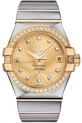 Model: 123.25.35.20.58.001 - CASE = [Material:Steel/18kt Gold], [Case Diameter:35], [Case Back:Solid], [Water Resistant:100 Meters/330 Feet], [Crystal:Scratch Resistant Sapphire],; DIAL = [Color:Champagne/Diamond],; MOVEMENT = [Type:Automatic Self Winding],; BAND = [Clasp:Deployment Buckle], [Type:Steel/18kt Gold], (Usually ships in 2 to 4 weeks.)