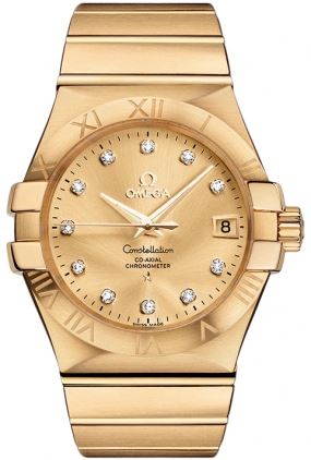 Model: 123.50.35.20.58.001 - CASE = [Material:18kt Gold], [Case Diameter:35], [Case Back:Solid], [Water Resistant:100 Meters/330 Feet], [Crystal:Scratch Resistant Sapphire], DIAL = [Color:Champagne/Diamonds], MOVEMENT = [Type:Automatic Self Winding], BAND = [Clasp:Deployment Buckle], [Type:18kt Gold], (Usually ships in 2 to 4 weeks.)