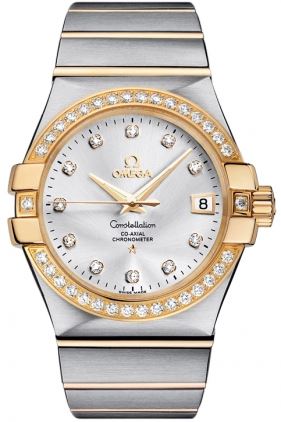 Model: 123.25.35.20.52.002 - CASE = [Material:Steel/18kt Gold], [Case Diameter:35], [Case Back:Solid], [Water Resistant:100 Meters/330 Feet], [Crystal:Scratch Resistant Sapphire], DIAL = [Color:Silver/Diamond], MOVEMENT = [Type:Automatic Self Winding], BAND = [Clasp:Deployment Buckle], [Type:Steel/18kt Gold],  (Usually ships in 2 to 4 weeks.)