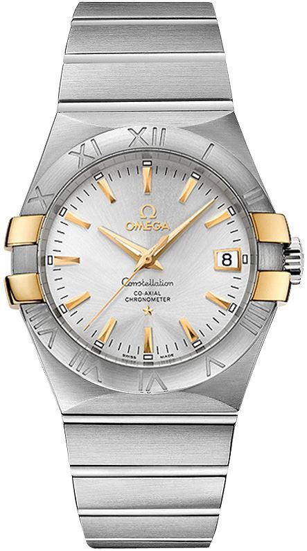 Model: 123.20.35.20.02.004 - CASE = [Material:Stainless Steel and Yellow Gold], [Case Diameter:35], [Bezel:Fixed], [Case Back:Skeleton], [Water Resistant:100 Meters - 330 Feet], [Crystal:Scratch Resistant Sapphire], DIAL = [Color:Silver with Gold Index Hour Markers], MOVEMENT = [Type:Automatic Chronometer], [Crown:Push In], BAND = [Clasp:Folding], [Type:Stainless Steel], (In Stock - Ready to ship.)