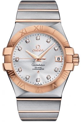 Model: 123.20.35.20.52.001 - CASE = [Material:Steel/18kt Rose Gold], [Case Diameter:35], [Case Back:Solid], [Water Resistant:100 Meters/330 Feet], [Crystal:Scratch Resistant Sapphire], DIAL = [Color:Silver/Diamond], MOVEMENT = [Type:Automatic Self Winding], BAND = [Clasp:Deployment Buckle], [Type:Steel/18kt Rose Gold], (Usually ships in 2 to 4 weeks.)