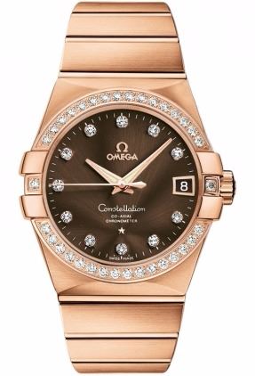 Model: 123.55.38.21.63.001 - CASE = [Material:18kt Rose Gold], [Case Diameter:38], [Case Back:Solid], [Water Resistant:100 Meters/330 Feet], [Crystal:Scratch Resistant Sapphire],; DIAL = [Color:Brown/Diamond],; MOVEMENT = [Type:Automatic Self Winding],; BAND = [Clasp:Deployment Buckle], [Type:18kt Rose Gold], (Usually ships in 2 to 4 weeks.)