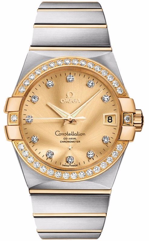 Model: 123.25.38.21.58.001 - CASE = [Material:Stainless Steel & Gold], [Case Diameter:38], [Case Back:See-thru Sapphire crystal], [Water Resistant:100 Meters - 330 Feet], [Crystal:Anti-Reflective Scratch Resistant Sapphire],; DIAL = [Color:Champagne],; MOVEMENT = [Type:Automatic Self Winding - Chronometer],; BAND = [Clasp:Push Button Foldover Clasp], [Type:Steel & Yellow Gold Brushed], (Usually ships in 2 to 4 weeks.)