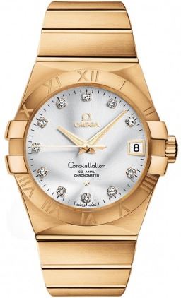 Model: 123.50.38.21.52.002 - CASE = [Material:18kt Gold], [Case Diameter:38], [Case Back:Solid], [Water Resistant:100 Meters/330 Feet], [Crystal:Scratch Resistant Sapphire],; DIAL = [Color:Silver/Diamonds],; MOVEMENT = [Type:Automatic Self Winding],; BAND = [Clasp:Deployment Buckle], [Type:18kt Gold], (Usually ships in 2 to 4 weeks.)