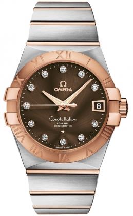 Model: 123.20.38.21.63.001 - CASE = [Material:Steel/18kt Rose Gold], [Case Diameter:38], [Case Back:Solid], [Water Resistant:100 Meters/330 Feet], [Crystal:Scratch Resistant Sapphire], DIAL = [Color:Brown/Diamond], MOVEMENT = [Type:Automatic Self Winding], BAND = [Clasp:Deployment Buckle], [Type:Steel/18kt Rose Gold], (Usually ships in 1 to 2 business days.)