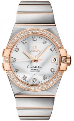 Model: 123.25.38.21.52.001 - CASE = [Material:Steel/18kt Rose Gold], [Case Diameter:38], [Case Back:Solid], [Water Resistant:100 Meters/330 Feet], [Crystal:Scratch Resistant Sapphire], DIAL = [Color:Silver/Diamond], MOVEMENT = [Type:Automatic Self Winding], BAND = [Clasp:Deployment Buckle], [Type:Steel/18kt Rose Gold], (Usually ships in 2 to 4 weeks.)