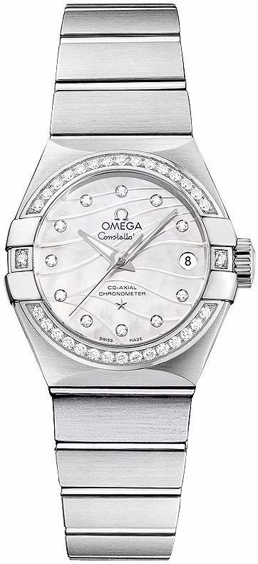 Model: 123.15.27.20.55.002 - CASE = [Material:Stainless Steel], [Case Diameter:27], [Case Thickness:9mm], [Bezel:Fixed with Diamonds], [Case Back:Skeleton], [Water Resistant:100 Meters - 330 Feet], [Crystal:Scratch Resistant Sapphire],; DIAL = [Color:Mother of Pearl with Wavy Pattern and Diamonds],; MOVEMENT = [Type:Automatic Chronometer], [Crown:Push In],; BAND = [Clasp:Folding], [Type:Stainless Steel], (Usually ships in 2 to 4 weeks.)