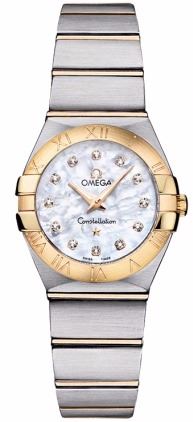 Model: 123.20.24.60.55.002 - CASE = [Material:Steel/18kt Gold], [Case Diameter:24], [Case Back:Solid], [Water Resistant:100 Meters/330 Feet], [Crystal:Anti-Reflective Scratch Resistant Sapphire],; DIAL = [Color:White Mother Of Pearl/Diamond],; MOVEMENT = [Type:Battery Powered Quartz],; BAND = [Clasp:Deployment Buckle], [Type:Steel/18kt Gold], (Usually ships in 1 to 2 weeks.)