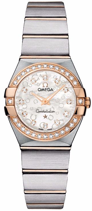 Model: 123.25.24.60.55.009 - CASE = [Material:Steel/18kt Rose Gold], [Case Diameter:24], [Case Back:Solid], [Water Resistant:100 Meters/330 Feet], [Crystal:Scratch Resistant Sapphire],; DIAL = [Color:White Mother Of Pearl/Diamond],; MOVEMENT = [Type:Battery Powered Quartz],; BAND = [Clasp:Deployment Buckle], [Type:Steel/18kt Rose Gold], (Usually ships in 2 to 4 weeks.)