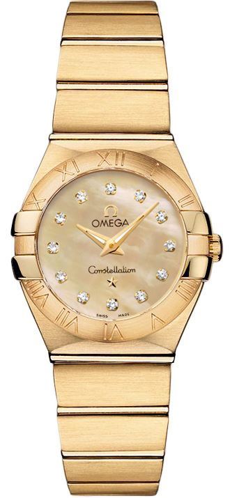 Model: 123.50.24.60.57.001 - CASE = [Material:18kt Yellow Gold], [Case Diameter:24], [Case Thickness:8.2mm], [Bezel:Fixed], [Case Back:Solid], [Water Resistant:100 Meters - 330 Feet], [Crystal:Scratch Resistant Sapphire], DIAL = [Color:Champagne Mother of Pearl with Diamonds], MOVEMENT = [Type:Quartz], [Crown:Push In], BAND = [Clasp:Folding], [Type:18kt Yellow Gold], (Usually ships in 2 to 4 weeks.)