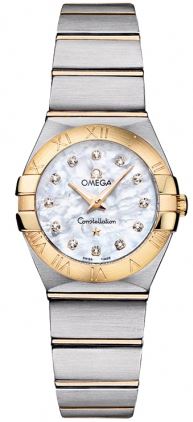 Model: 123.20.24.60.55.002 - CASE = [Material:Steel/18kt Gold], [Case Diameter:24], [Case Back:Solid], [Water Resistant:100 Meters/330 Feet], [Crystal:Anti-Reflective Scratch Resistant Sapphire], DIAL = [Color:White Mother Of Pearl/Diamond], MOVEMENT = [Type:Battery Powered Quartz], BAND = [Clasp:Deployment Buckle], [Type:Steel/18kt Gold], (Usually ships in 1 to 2 weeks.)