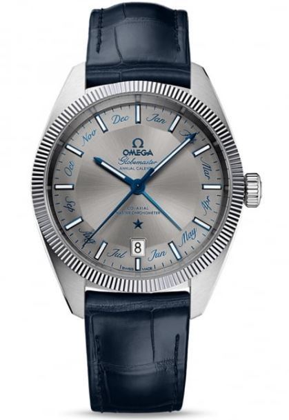 Model: 130.33.41.22.06.001 - CASE = [Material:Stainless Steel], [Case Diameter:41], [Bezel:Fixed], [Case Back:Skeleton], [Water Resistant:100 Meters - 330 Feet], [Crystal:Scratch Resistant Sapphire], DIAL = [Color:Gret], MOVEMENT = [Type:Automatic, 55 Hour Power Reserve], [Crown:Screw Down], BAND = [Clasp:Tang], [Type:Blue Leather], (Usually ships in 2 to 4 months.)