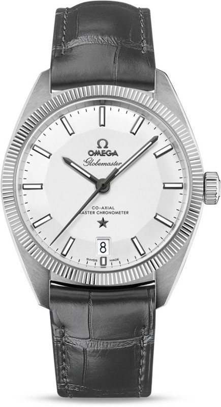 Model: 130.33.39.21.02.001 - CASE = [Material:Stainless Steel], [Case Diameter:39], [Case Back:Skeleton], [Water Resistant:100 Meters - 330 Feet], [Crystal:Scratch Resistant Sapphire], DIAL = [Color:Silver with Luminescent Hands and Index Hour Markers], MOVEMENT = [Type:Automatic], [Crown:Push In], BAND = [Clasp:Deployment], [Type:Gray Alligator Leather], (Usually ships in 2 to 4 weeks.)