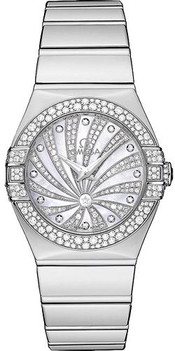 Model: 123.55.27.60.55.014 - CASE = [Material:18kt White Gold], [Case Diameter:27], [Case Back:Solid], [Water Resistant:100 Meters/330 Feet], [Crystal:Scratch Resistant Sapphire], DIAL = [Color:White Mother Of Pearl/Diamond], MOVEMENT = [Type:Battery Powered Quartz], BAND = [Clasp:Deployment Buckle], [Type:18kt White Gold], (Usually ships in 2 to 4 weeks.)
