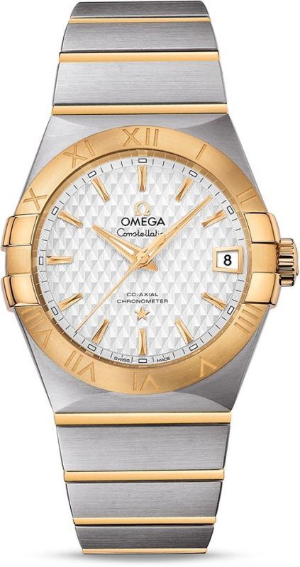 Model: 123.20.38.21.02.009 - CASE = [Material:Stainless Steel and 18kt Gold], [Case Diameter:38], [Bezel:Fixed], [Case Back:Skeleton], [Water Resistant:100 Meters - 330 Feet], [Crystal:Scratch Resistant Sapphire], DIAL = [Color:Silver with Gold Hands and Index Hour Markers], MOVEMENT = [Type:Automatic Chronometer], [Crown:Push In], BAND = [Clasp:Folding], [Type:Stainless Steel and 18kt Gold], (Usually ships in 2 to 4 weeks.)
