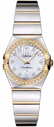 Model: 123.25.24.60.55.008 - CASE = [Material:Steel/18kt Gold], [Case Diameter:24], [Case Back:Solid], [Water Resistant:100 Meters/330 Feet], [Crystal:Scratch Resistant Sapphire],; DIAL = [Color:White Mother Of Pearl Guilloche Diamond],; MOVEMENT = [Type:Battery Powered Quartz],; BAND = [Clasp:Deployment Buckle], [Type:Steel/18kt Gold], (Usually ships in 2 to 4 weeks.)