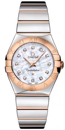 Model: 123.20.27.60.55.003 - CASE = [Material:Steel/18kt Rose Gold], [Case Diameter:27], [Case Back:Solid], [Water Resistant:100 Meters/330 Feet], [Crystal:Scratch Resistant Sapphire], DIAL = [Color:White Mother Of Pearl/Diamond], MOVEMENT = [Type:Battery Powered Quartz], BAND = [Clasp:Deployment Buckle], [Type:Steel/18kt Rose Gold], (Usually ships in 2 to 4 weeks.)