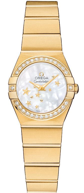 Model: 123.55.24.60.05.001 - CASE = [Material:18kt Yellow Gold], [Case Diameter:24], [Case Back:Solid], [Water Resistant:100 Meters - 330 Feet], [Crystal:Scratch Resistant Sapphire], DIAL = [Color:Mother of Pearl], MOVEMENT = [Type:Battery Powered Quartz], BAND = [Clasp:Push Button Foldover Clasp], [Type:18kt Yellow Gold Brushed], (Usually ships in 2 to 4 weeks.)