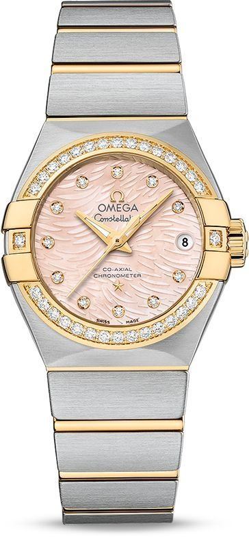 Model: 123.25.27.20.57.005 - CASE = [Material:Stainless Steel and 18kt Gold], [Case Diameter:27], [Case Thickness:9mm], [Bezel:Fixed], [Case Back:Skeleton], [Water Resistant:100 Meters - 330 Feet], [Crystal:Scratch Resistant Sapphire],; DIAL = [Color:Pink Mother of Pearl with Gold Hands and Diamond Hour Markers],; MOVEMENT = [Type:Automatic Chronometer], [Crown:Push In],; BAND = [Clasp:Folding], [Type:Stainless Steel and 18kt Gold], (Usually ships in 2 to 4 weeks.)