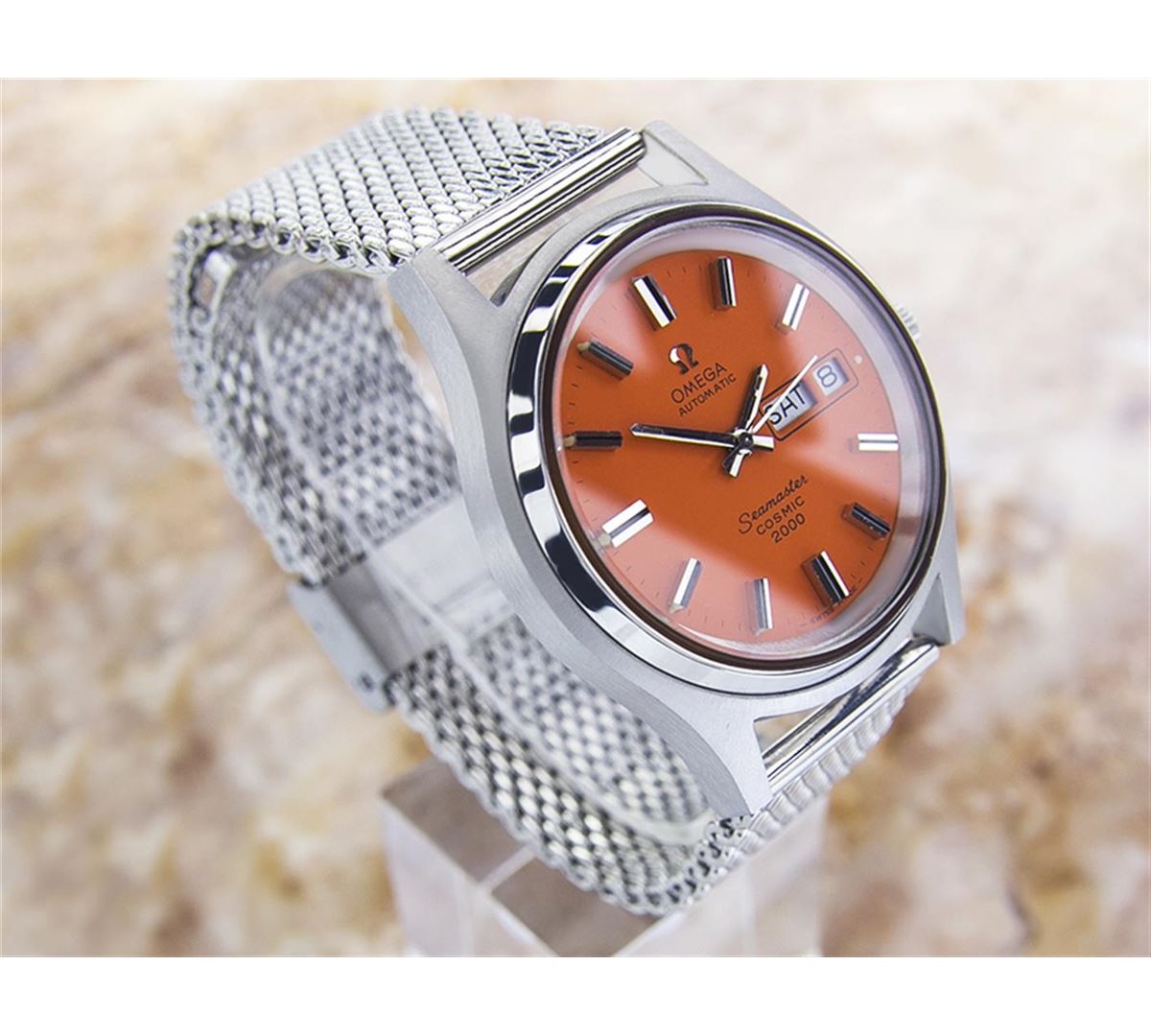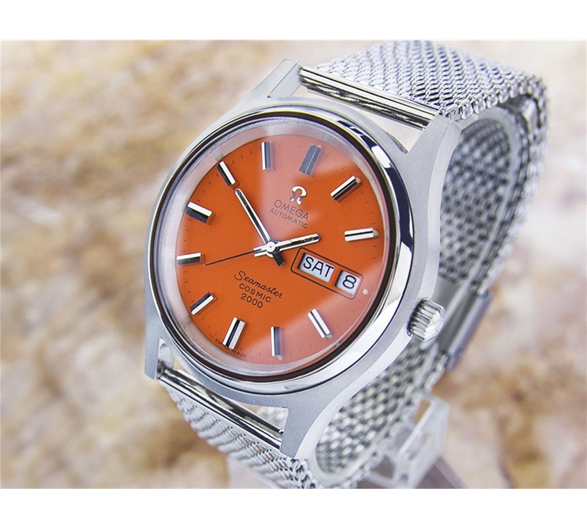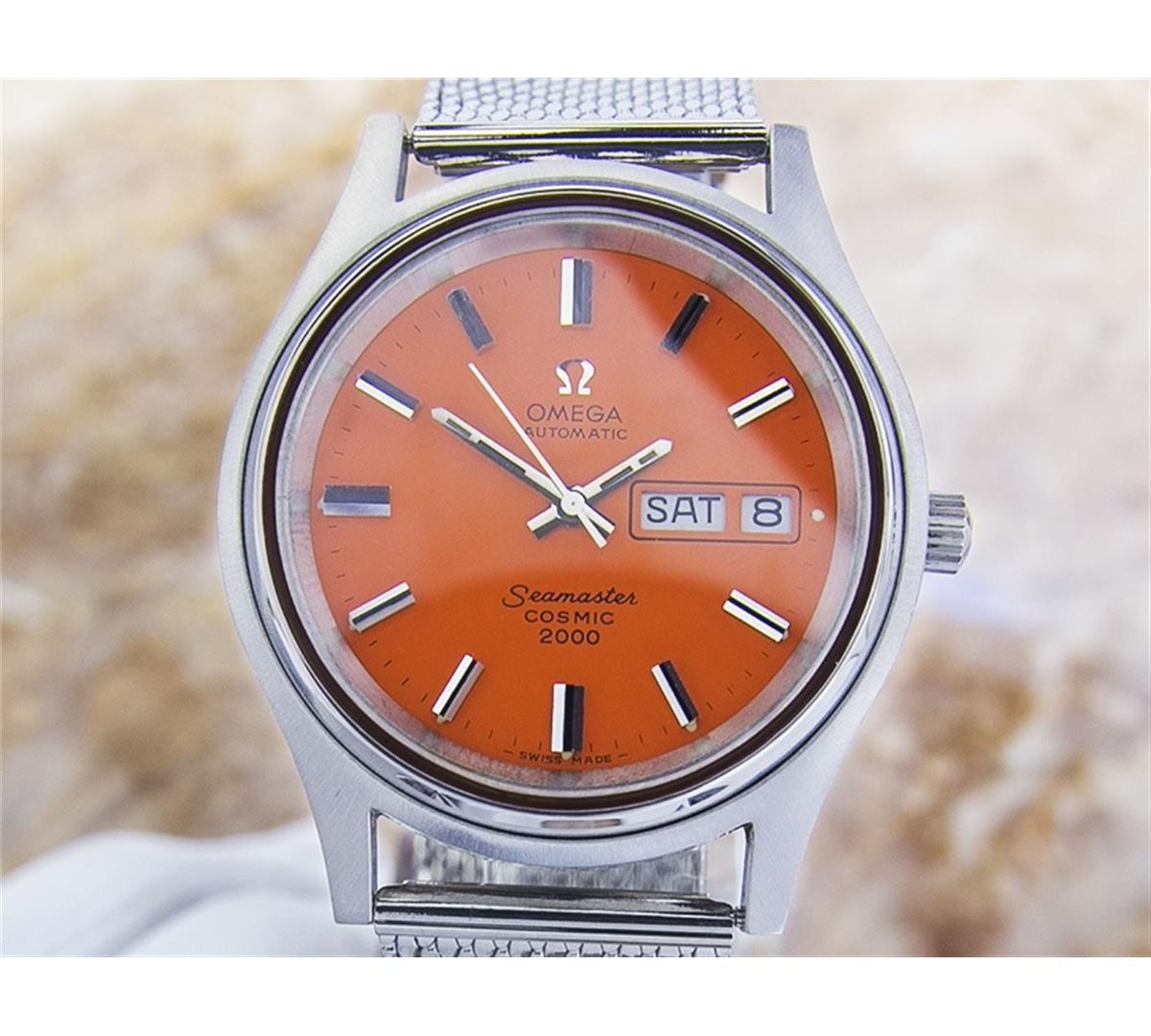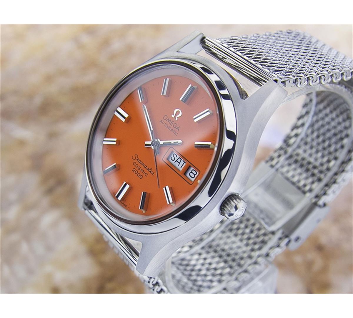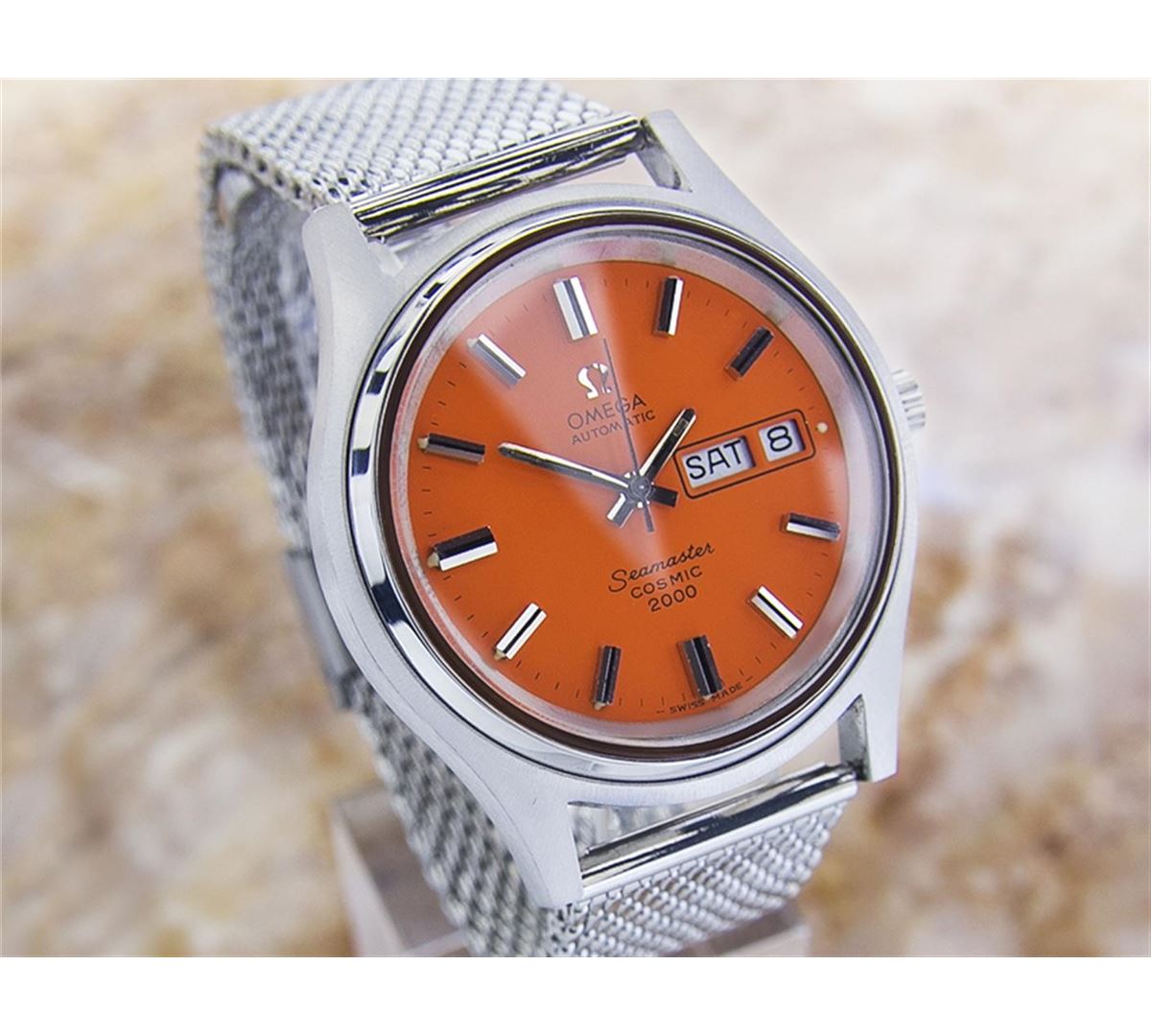Omega Cosmic 2000 Stainless Steel Automatic Watch. Brand: OMEGA . Model: COSMIC 2000. Movement: Automatic. Case Material: Stainless Steel. Crystal: SAPPHIRE. Case Size: 37X45. Band: NEW LEATHER BAND GENERIC.